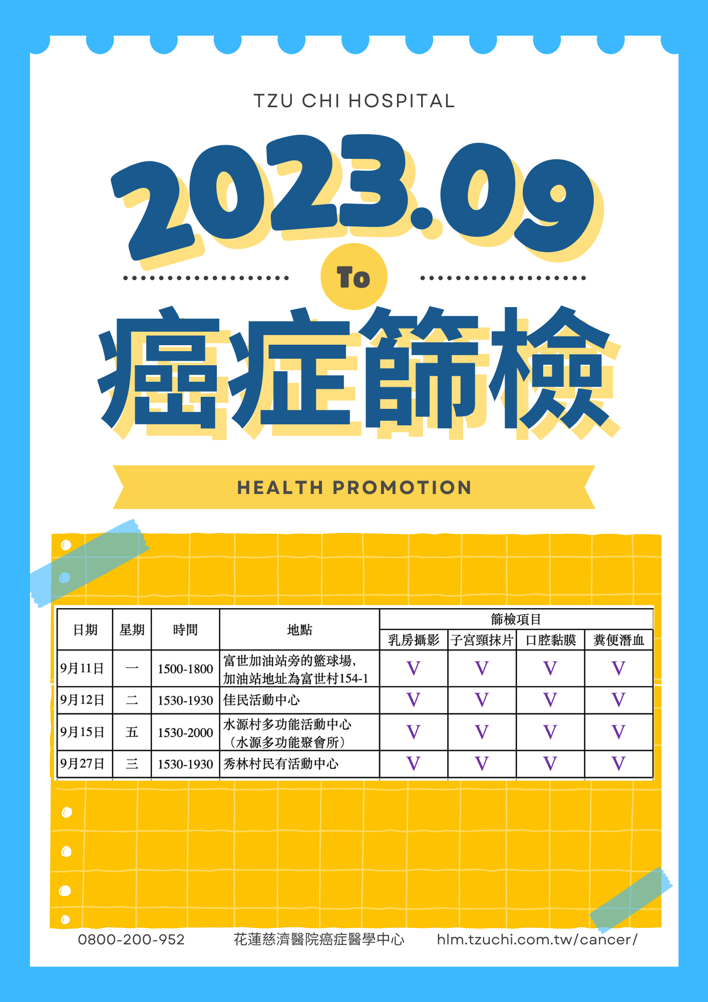 2023年9月社區癌症篩檢場次