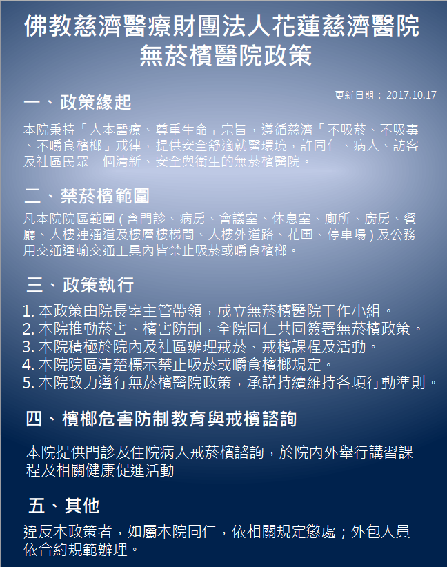 無檳醫院政策 | 花蓮慈濟醫院