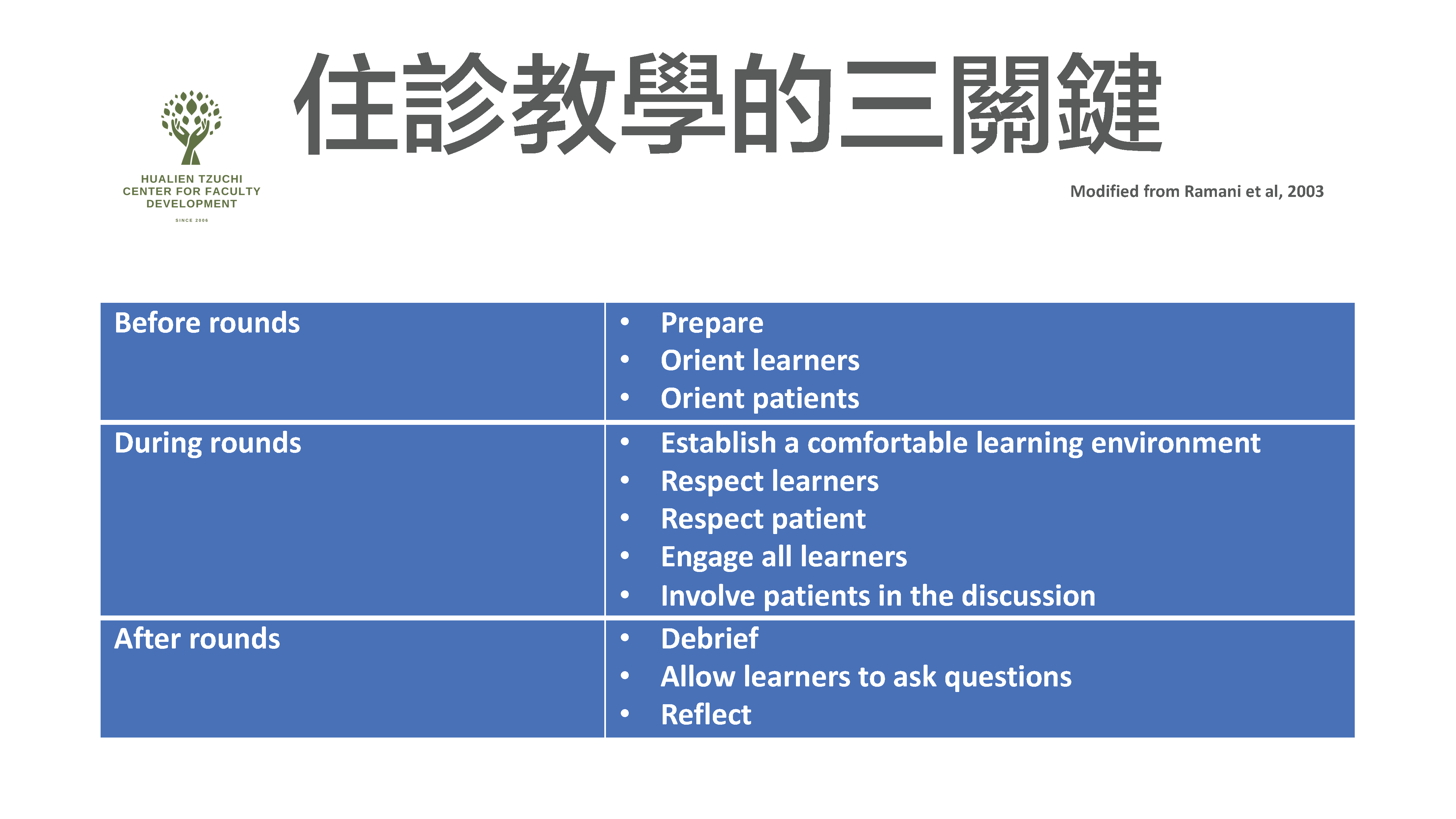 下一篇文章: 112/11/07 教學策略工坊第七發:STRATEGIES FOR EFFECTIVE BEDSIDE TEACHING