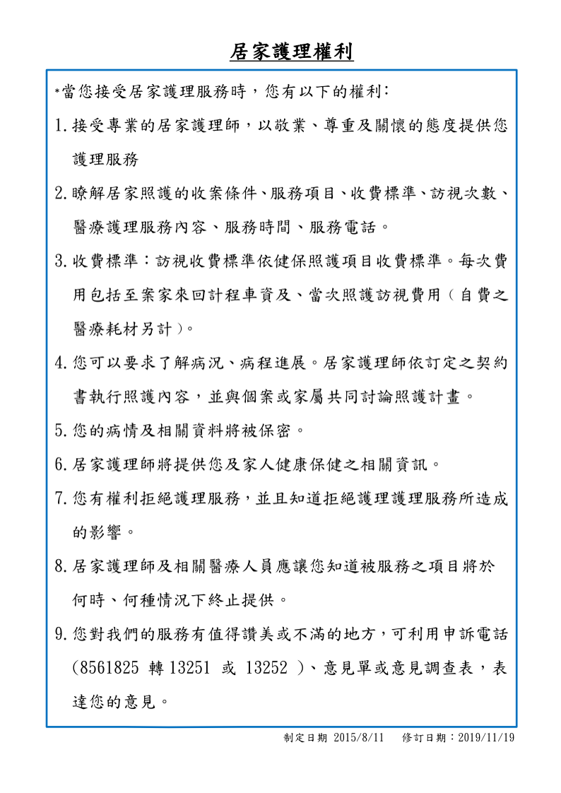居家護理權利與義務