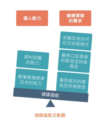健康識能不只是民眾個人能力的問題,而是個人能力與健康識能相關的需求度與照護體系的複雜度互動的產物。Baker(2006)提出個人能力、健康相關的書面素養與口語素養及健康結果之概念模式,指出健康環境口語與書面溝通的複雜度與困難度影響個人健康識能,進而影響知識、態度、自我效能與行為改變而造成不同的健康結果。因此提升健康識能不只從民眾個人進行,最重要的是改變健康照護服務,使民眾的健康識能不會成為健康服務的阻礙。 資料取自衛生福利部國民健康署<健康促進工作手冊> |