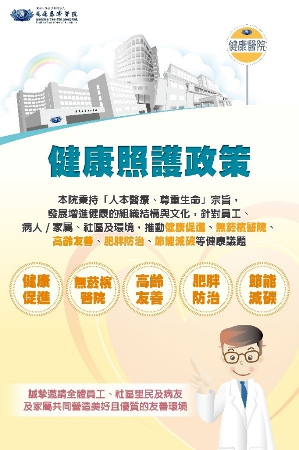 本院為推展落實健康促進醫院與社區醫療健康照護服務,特設置健康促進醫院管理委員會,訂定健康營造年度工作計畫及明確之目標,落實執行與定期檢討改善,促進民眾健康。
