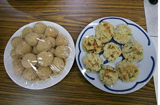 2.素鬆小丸子-使用磨豆漿剩餘的豆渣蒸熟後,放入油鍋內乾炒約三十分鐘後,添加(辣)豆瓣醬或是素蠔油、糖等調味料,就是美味的素鬆了,既省錢又好吃。素鬆的延伸用法-利用家中剩飯即可作成可愛的素鬆小丸子,作為早餐或野餐點心都很方便,小朋友也可以一起製作。