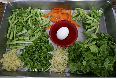 3.家常煎餅-利用常見的紅蘿蔔皮、芹菜葉、蒸熟的豆渣等,加上少許麵粉與雞蛋混合後,以小火煎熟至兩面呈金黃色即可,食用前可加醬油膏調味,可以當成早餐或小朋友的點心。