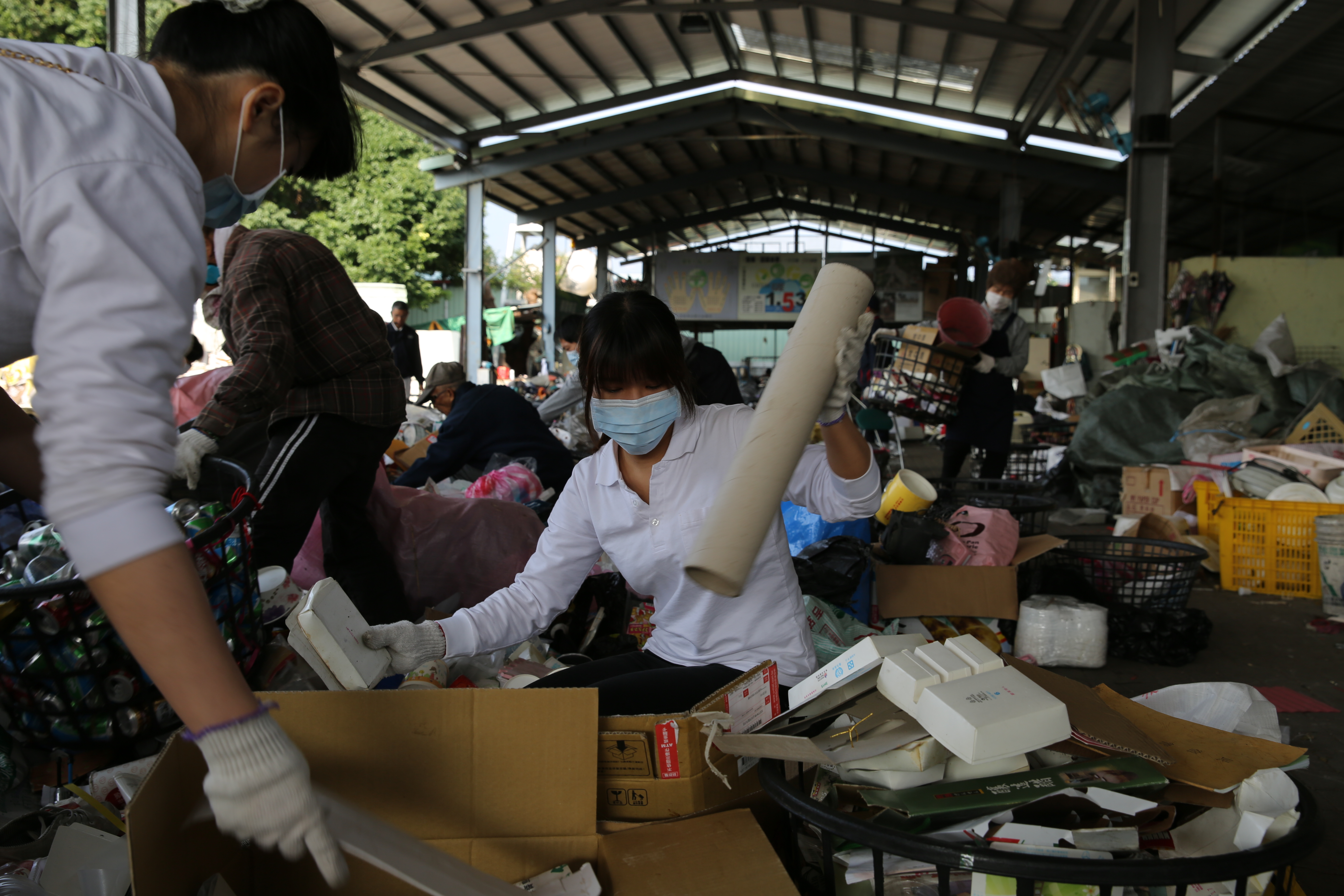 營養師們穿戴好口罩及手套,分工合作,運用眼力找出資源分類。