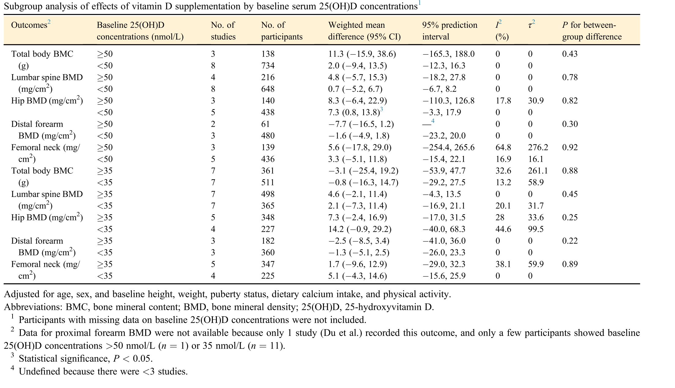 本研究旨在探討補充維生素D對兒童和青少年骨礦物質密度 (BMD) 的影響是否因基線(Baseline)維生素D狀態而異,並評估補充維生素D對維生素D缺乏個體的影響。