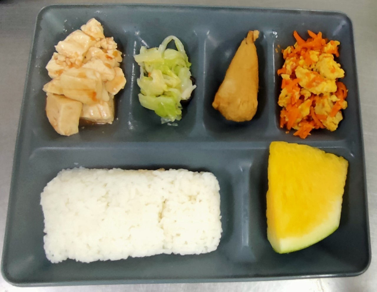 2. 早餐麵包者提供白饅頭、鹹粥給予白稀飯;午晚餐不提供乾燥、醃製蔬菜、乾豆類。午晚餐青菜量會減半。