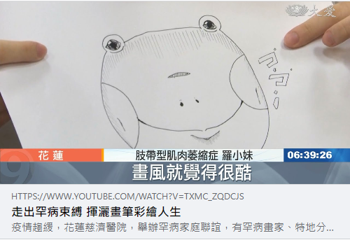 疫情趨緩,花蓮慈濟醫院,舉辦罕病家庭聯誼,有罕病畫家、特地分享自己的繪畫作品,用畫筆勇追夢。 罕病畫家鄭鈴,引導大家把自己畫成青蛙,就像一把鑰匙,釋放了平常緊繃的心情。透過經驗分享,讓家人更理解彼此想法,雖然疾病罕見,但愛與夢想能夠超越限制,傾訴生命的故事。