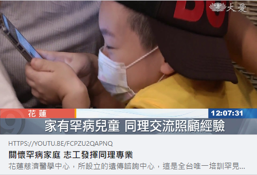 花蓮慈濟醫學中心,所設立的遺傳諮詢中心,這是全台唯一培訓罕見疾病關懷志工的單位。今天上午,舉辦了一場,交流聯誼會,志工用愛陪伴,也分享經驗。
