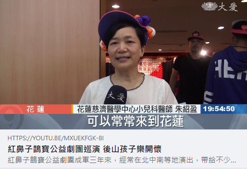 紅鼻子鵲寶公益劇團成軍三年來,經常在北中南等地演出,帶給不少小朋友歡樂的時光,這次他們首度前進東台灣,來到慈濟大學還有花蓮慈濟醫學中心演出,而前來欣賞演出的大都是小病童的家庭,所以演出的志工也特別賣力,希望小朋友都能像他們演出的故事主角一樣,找到勇氣面對挑戰,並且得到幸福。