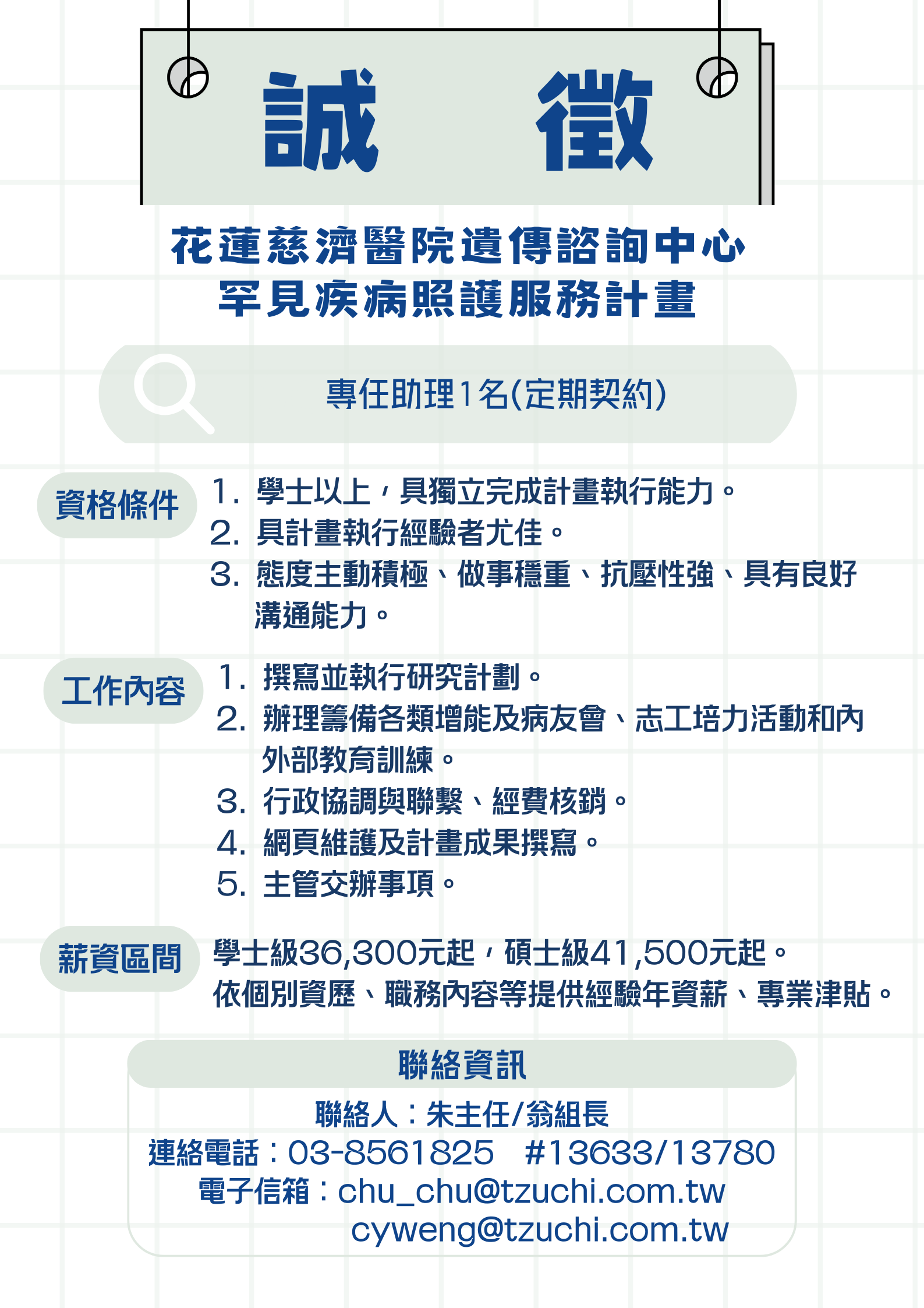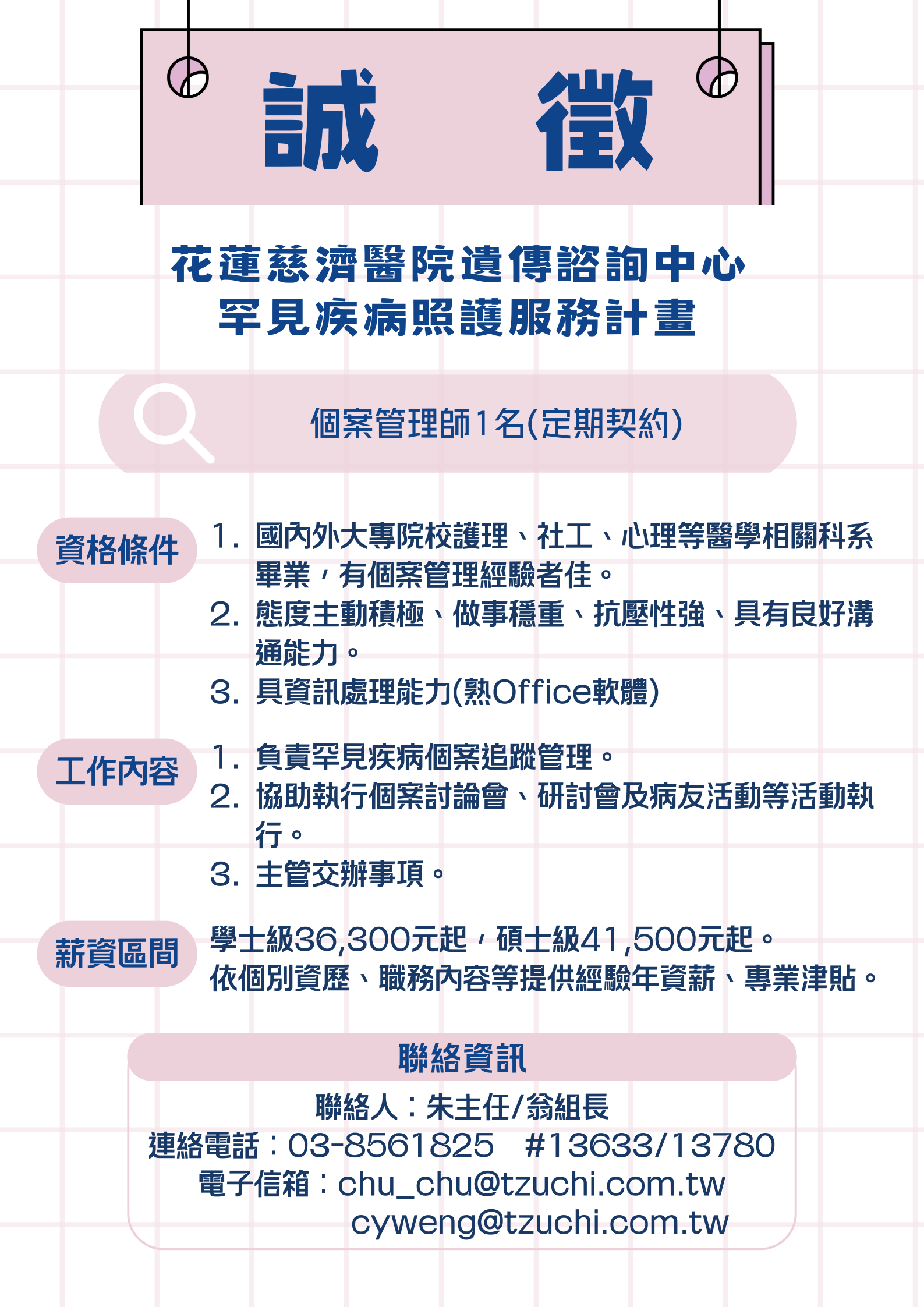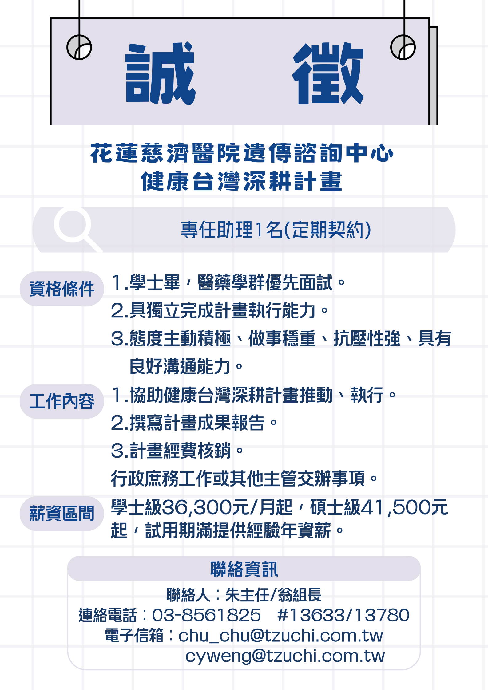 招募~計畫專任助理&個案管理師~歡迎加入遺傳諮詢中心!
