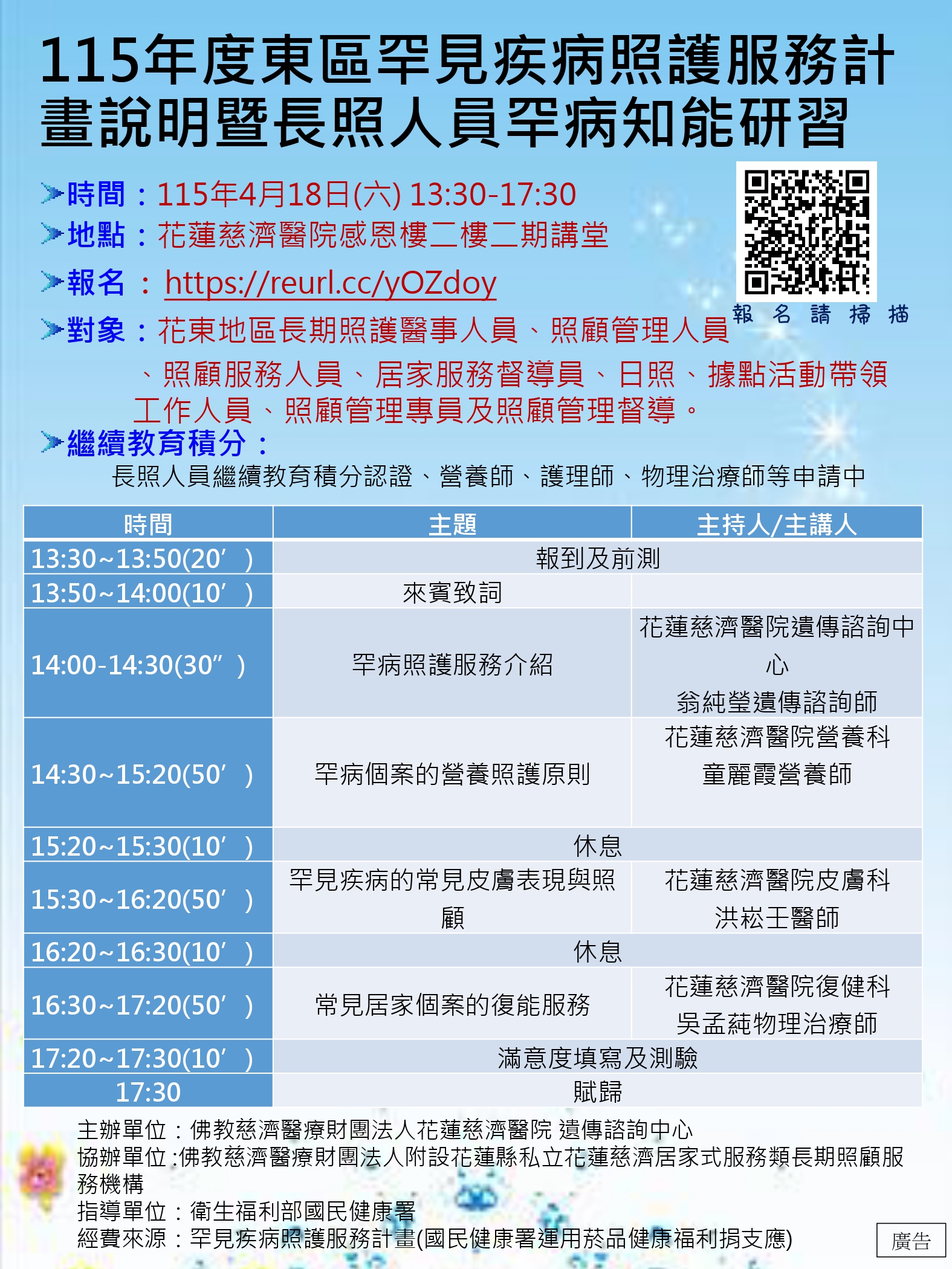 地點:花蓮慈濟醫院大愛七樓701教室