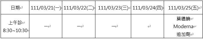 5.疫苗專責門診表: