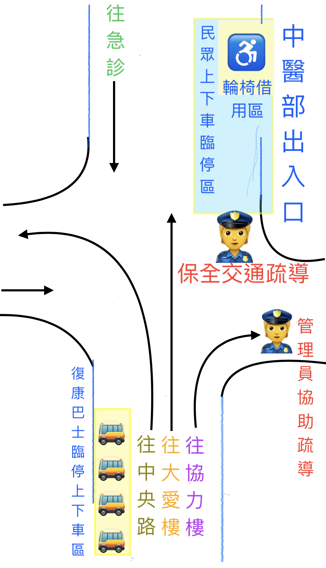 因本院大愛樓入口地坪整建工程(2022/12/3-2023/1/22),工程期間內院區內行車動線有部分調整,提醒就診民眾注意。