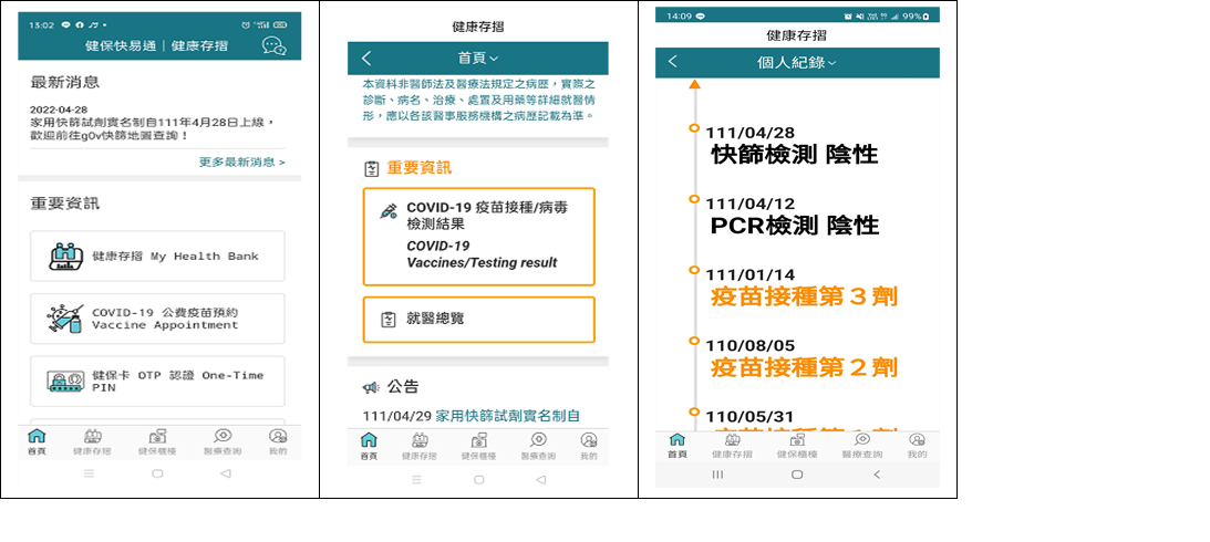 (2)點選~健康存摺 COVID-19疫苗接種/病毒檢測結果