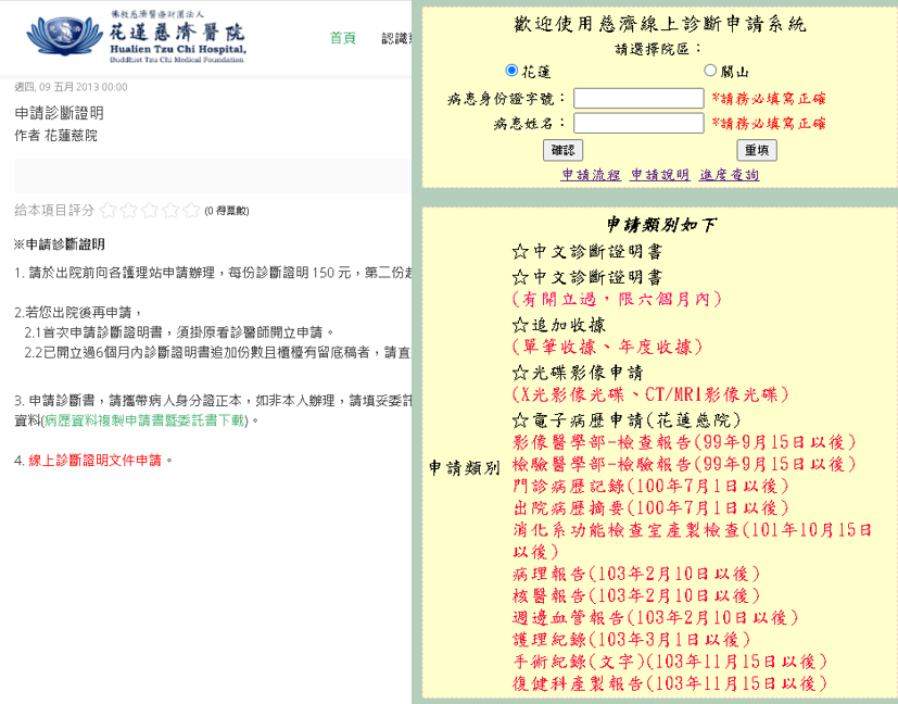 文件申請 線上病歷申請系統(收費-複製費200元+1張報告5元)~提供郵寄服務