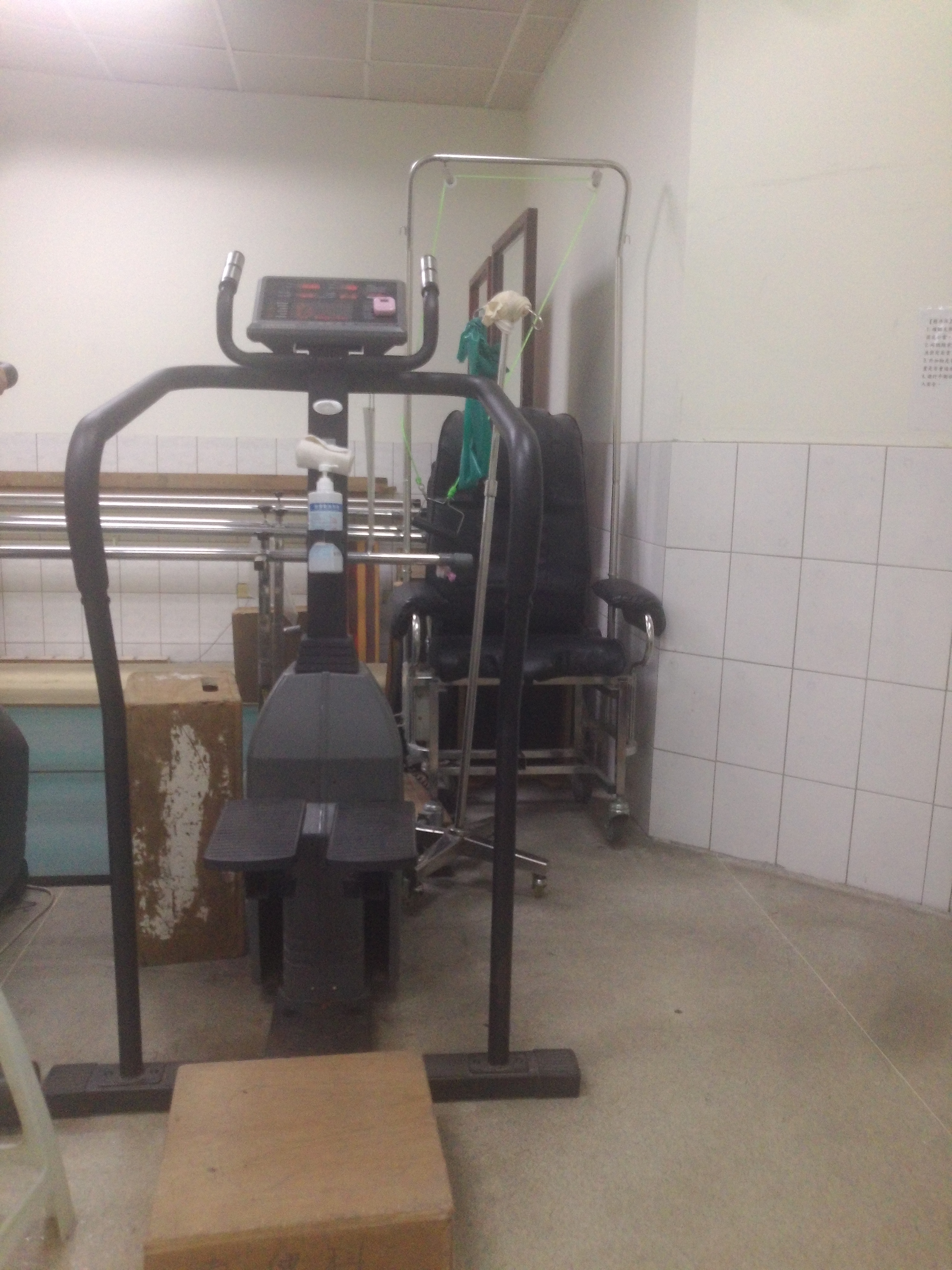 下肢復健機器人,震動訓練儀,電動傾斜床、平行桿、平衡木、壁桿、治療床、下肢肌力訓練組、阻力式腳踏車、電動腳踏車、跑步機、踏步機、懸吊運動訓練組(redcord)、訓練用高低階木梯、各式治療球、滑輪組、懸吊式步行訓練器、功能性電刺激。