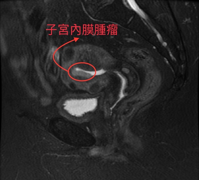 圖說:子宮內膜腫瘤核磁共振造影(MRI)影像。