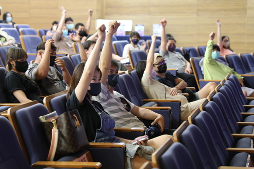 左、右圖:現場參與的爸爸媽媽們熱情參與Q&A問答。