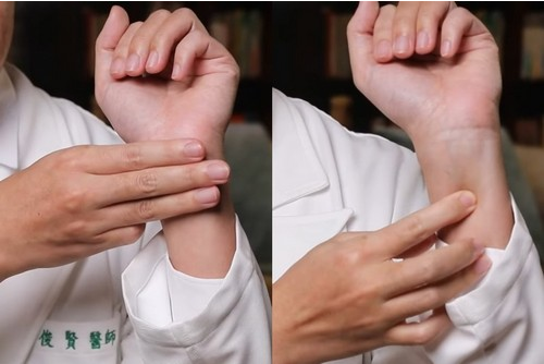 ▲劉俊賢醫師介紹,內關穴位在手橫紋三指伏的寬度下、兩筋之間,可以按壓達到情志養生的效果。