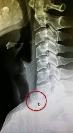70多歲的陳先生,日前深夜因喉嚨疼痛,被家人送往花蓮慈濟醫院就醫,經電腦斷層檢查發現他食道中有魚刺,經耳鼻喉科副主任周昱甫緊急進行食道鏡手術,為他取出2公分大的魚刺,順利解除魚刺卡喉危機。周昱甫醫師表示,民眾不小心吞到魚刺可自我觀察2至3天,若是喉嚨持續有異物感及疼痛,建議到醫院檢查,避免引起頸部感染。
