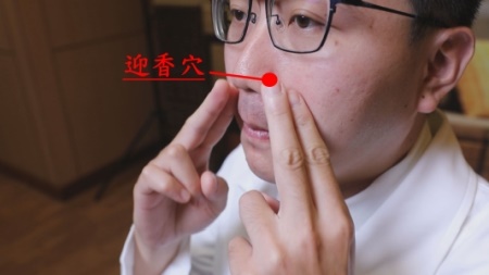 最後是黃繻誼醫師分享兩個適合在秋季按壓的穴位。首先是「迎香穴」,迎香穴屬於大腸經的穴位,對於鼻子過敏或鼻塞的人有通鼻竅的效果,按壓方式可以用將左右兩手比成劍指,搓揉我們的鼻翼,這樣可以按壓到鼻翼的穴位,這對於長期過敏,在溫差變化時容易打噴嚏的人會有幫助。還有一個穴位就是「魚際穴」,魚際穴屬於肺經的穴位,在按摩的方式上我們可以將兩掌相對,將兩手魚際貼揉,這個穴位可用於清除肺熱、止咳喘,同時也可以幫助改善喉嚨的乾癢疼痛。