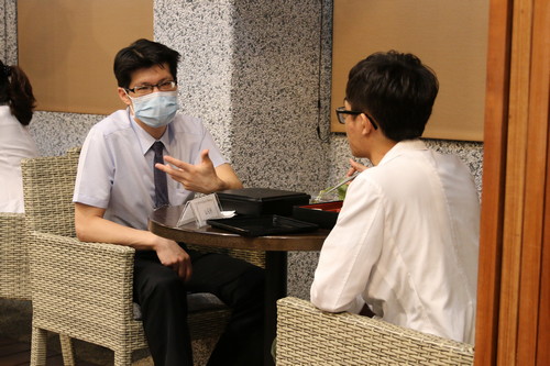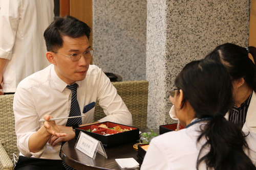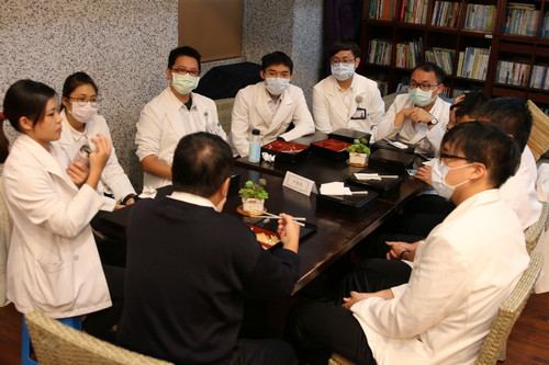 這次住院醫師內部招募說明會,邀請了內科部、外科部、婦產部、小兒部、急診科、泌尿科、骨科、眼科、復健科、皮膚科、整形外科、麻醉部、神經外科、神經科、耳鼻喉科、精神醫學部、家庭醫學部、放射診斷科、放射腫瘤科、核子醫學科、解剖病理科、中醫部等二十三個科別,近二十位主治醫師與二十二位PGY醫師以及中醫部九位實習醫學生參與,並利用中午時間,在放鬆身心的溫暖空間裡,享用餐點外,也主治醫師與住院醫師分享教學訓練以及未來的生涯規劃。