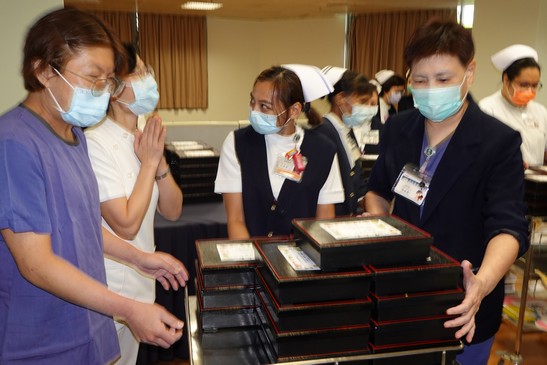 護理部副主任葉秀真表示,顏靜曦師姊在上一次主管會議提議發動素食餐盒後,護理部同仁就主動報名,先以掃二維碼方式進行調查意願,因此除6日外,還有22與29日等梯次。為了擴大上人推素理念,除餐盒上祝福卡外,也邀靜曦師姊錄製一段影音,說明素食餐盒背後的意義,讓全護理部同仁了解上人推素食的意義。