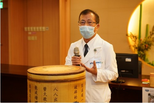 右圖:吳彬安副院長說,期待同仁在這樣的環境下能耳濡目染,慢慢養成茹素習慣後,也能翻轉手心,成為手心向下又有福報之人。