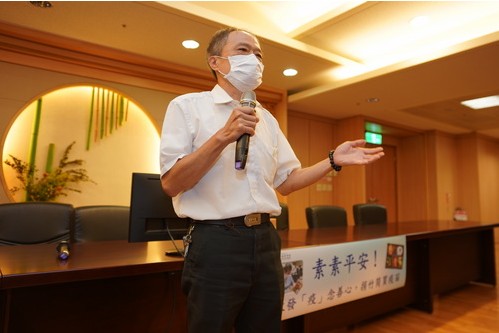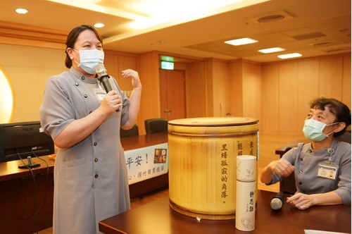 享用美味豐盛的素素平安餐的同時,吳彬安副院長也在現場高歌英文版「普天三無」慈濟歌曲,讓餐會更加溫馨。吳彬安副院長笑說,一粥一飯,當思來之不易,所以每吃一口都要感恩,也感恩常住志工顏靜曦師姐帶領臺北醫療志工、同仁家人,用愛為大家準備平安餐,最重要的是養成慈悲心,期待同仁在這樣的環境下能耳濡目染,慢慢養成茹素習慣後,也能翻轉手心,成為手心向下又有福報之人。