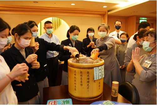 企劃室主任邱聖豪表示,一下子要做到吃全素很困難,但會慢慢去調整飲食習慣,因為每吃一餐素食,就可以減少對地球上生物的傷害,所以也鼓勵同仁一起多吃一餐素食來護生靈,此外,非常感謝院部主管、供膳組組長「江姊」江月貞、同仁、顏靜曦師姐、醫療志工等提供這麼美味的素食,若是每天吃這樣,一定天天茹素。