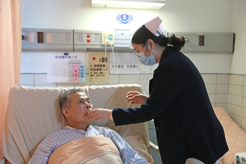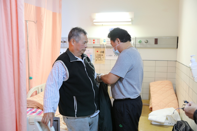 出院前一天,林欣榮院長與何宗融副院長特別到賴師兄的病房關懷。林院長開心地表示,相較近兩個月前師兄剛住院的模樣,現在真的好很多,很高興能看到中西醫合療的治療效果這麼好;何宗榮副院長也現場為賴明誠把脈,叮囑師兄身體偏寒,需要好好補身體。賴明誠不斷向林院長、何副院長、以及住院期間用心照顧他的專師黃湘玲道謝,微微發紅的眼眶與一聲聲感恩,都是賴師兄道不盡的真心。