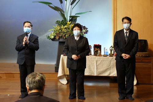林欣榮院長將花蓮慈院去年在醫療及人文的豐碩成果獻給 上人,表示2021年在品質提升、人才培育持續深耕,感謝院內各團隊同仁的付出,才有這一年來卓越的榮耀。