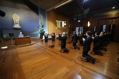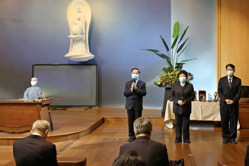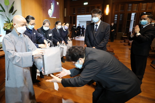 此外,除了在精舍主堂,不少花蓮慈院同仁也把握時間,在院內的二期講堂、協力講堂一共兩百四十六位同仁同步連線辭歲拜年,一起恭祝 上人法體安康、精舍師父與全球慈濟家人,新年快樂。