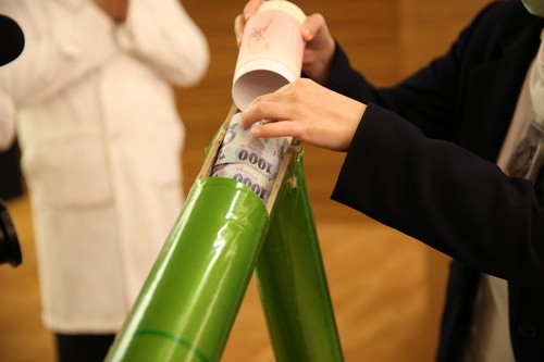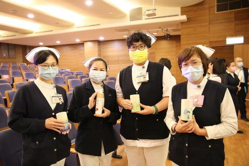 不過愛心並未就此停歇,活動結束後,人文室接到麻醉護理師潘慧珊跟藥學部副主任邱鴻義的來電,人文室也很發心的推上竹筒讓同仁親投善款,最後總共獲得善款善款12萬4071元。