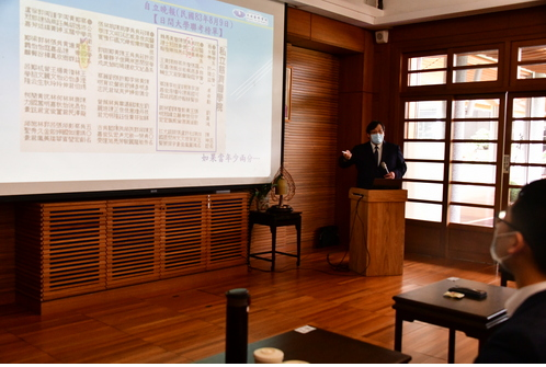 圖說:一到精舍的第一堂課就是從聆聽慈濟志工每天必須攝取的心靈資糧「志工早會」開始。
