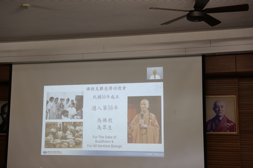 德昕師父開示時分享花蓮慈院器官移植中心主任陳言丞在今年初完成器官移植故事,一位六旬的婦人因腦幹出血重度昏迷瀕臨死亡,子女依照母親生前遺願同意捐出器官,移植團隊經過五個小時手術後取出肝臟與腎臟送回花蓮慈院,讓等待器官移植的的病友得到重生機會。
