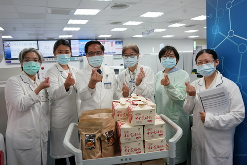 為了能盡快提供檢驗結果給感控小組,以利確診者後續的疫調處置作業,不僅分秒必爭,在輪班過程,同仁全力配合,沒有第二句話,特別是大小夜的值班同仁都知道,院裡還有很多單位的同仁和他們一樣不眠不休,正等著檢驗報告出來。或許是因為專注於工作,張淳淳主任說,好像每個人都不知道餓一樣,沒有食欲,所以她總是不時地提醒同仁「趕快去喝水、是不是需要去洗手間、有沒有休息、用餐了嗎、要記得洗手……」。