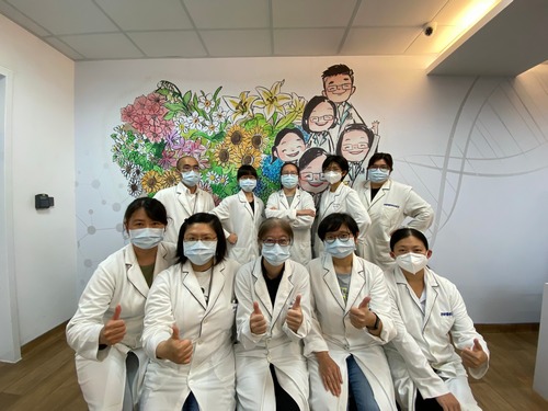 圖說:這次勇於承擔補位的九位組長與主任、副主任合照。散落三班,很難集合一起,要特別選一個時段才有辦法。(檢驗醫學科提供)