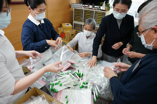 另外,因為檢驗套組需求量大,用來包裝的七號夾鏈袋竟然嚴重缺貨,合約供應商只剩十袋,於是並廣招同仁家屬趕緊出發到市區的各大量販店、免洗餐具零售店、材料行等,搶購七號夾鏈袋,甚至連回鄉的同仁也接到任務,就是幫忙買七號夾鏈袋回醫院,真是緊張地搶物資搶時間的難得經驗。大家都玩笑說:全花蓮的七號夾鏈袋都被我們買光了!
