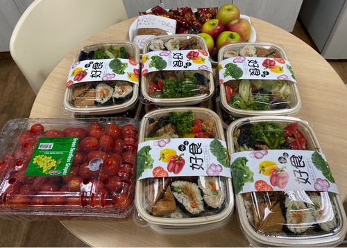 這些日子,同仁的餐盒都是來自精舍師父的愛心,張淳淳主任說,師父準備的餐盒色香味具全,每次菜色都不一樣,同仁滿心歡喜,疲憊的身體瞬間充滿了能量。她還聽到同仁打開餐盒後不久就驚呼「這麼好吃,叫我天天齋戒也願意」,素便當之外,還有糕點、米苔目、麵包等中西式點心。