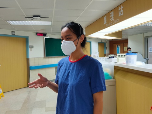 圖說(右);專責病房護理師黃嘉雯說,很驕傲能站在防疫第一線,這也是她的使命。(劉明繐攝)