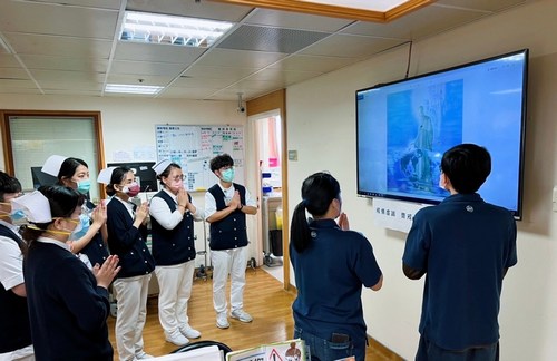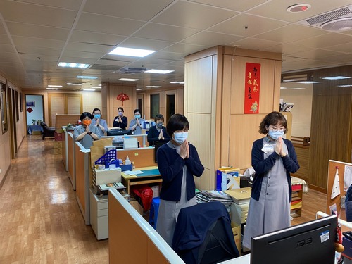 為了邀請更多的同仁參加午間的祈禱,林欣榮院長這兩天透過會議、院內網路社群,邀請各科室主管,同時也請主管轉達上人與精舍師父的關懷與祝福給同仁,並請主管邀請同仁在每天下午一點二十分前一起虔誠祈禱。