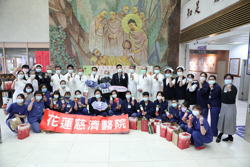 除了祈願牆啟用,花蓮慈濟醫院受花蓮縣衛生局委託,將在十八日上午十時進駐加強型防疫旅館的照護團隊十四人,由羅慶徽副院長帶隊在大廳一起祈福。