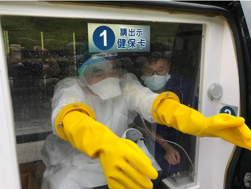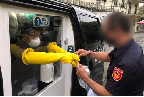 徐中平副院長分享,其實出發前都不敢告訴太太要去防疫旅館支援,怕她會很擔憂,但採檢車上防護措施都做得很好,真的不用擔心與害怕,徐副院長還笑說:「雙臂套著黃色大手套伸出車窗外,被半固定的拘束在採檢車上,脖子頗覺酸痛,但沒事!都保護得好好的。」(文/江家瑜;圖/王淑貞、江家瑜、護理部提供)