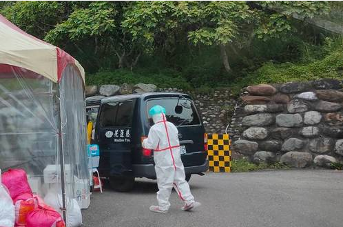因為每位住民入住時間不同,採檢時程也不同,所以每天上午十點,防疫採檢車準時從警衛室出發,首兩日的住民採檢工作,由徐中平、羅慶徽副院長打頭陣來為鄉親服務。一聽到防疫旅館需要人手支援住民採檢,徐中平副院長二話不說就立刻答應接下這份任務。徐中平副院長指出,防疫旅館依規定每位受檢者的進出不得交叉會面,所以一進一出得花費不少時間,一個半小時的時間才完成十四例的採檢工作。