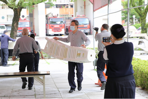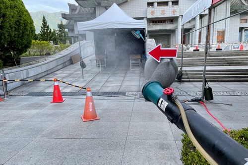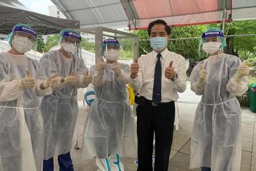 圖說:總務室同仁每日協助清消,為團隊提供安全的快篩環境。
