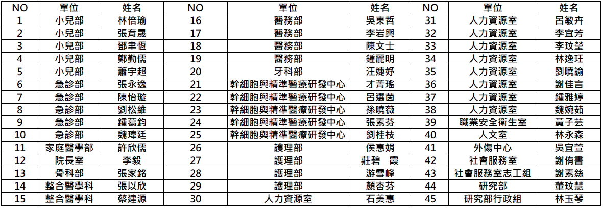 圖說:醫務秘書李毅帶領團隊包含感染管理控制室、總務室、工務室、人力資源室、人文室等同仁,