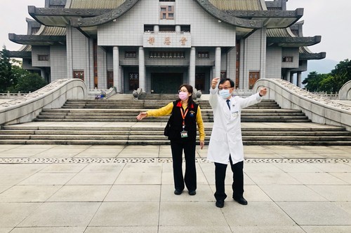 左圖:在第一線負責報到處的同仁們表示,支持他們撐下去的力量,是因為他們有著「慈濟魂與慈濟精神」。