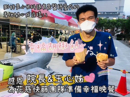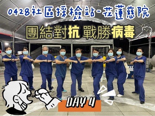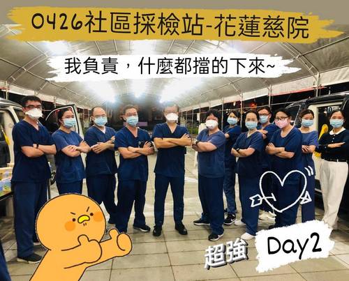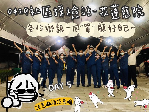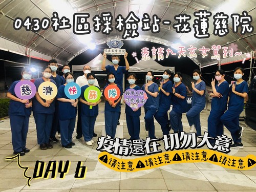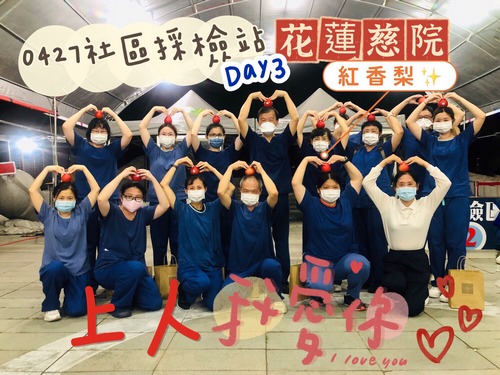 劉曉諭主任也分享,花蓮縣衛生局檢驗科長林燕孜看到他們執行了七天的快篩站任務,直說花蓮慈院與其他承辦的醫院最大的不同就是團隊很和諧,且面對這樣的工作,都是帶著一顆愉快的心之外,最重要的原因是有 證嚴上人的愛,所以很幸福!